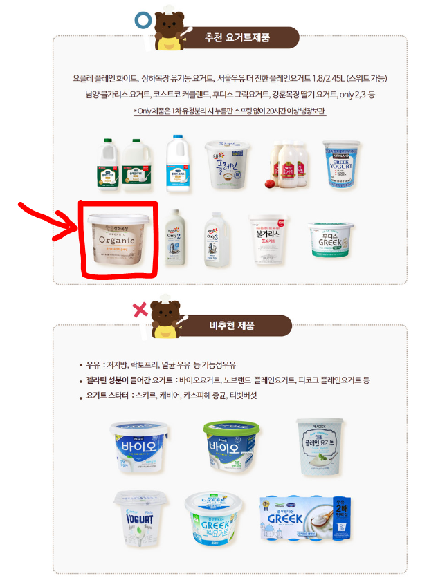나는 업체가 사용권장했떤 유기농 요거트(상하목장)을 이용해보려고 한다! 실제로 400g 짜리 4통을 준비하였다.