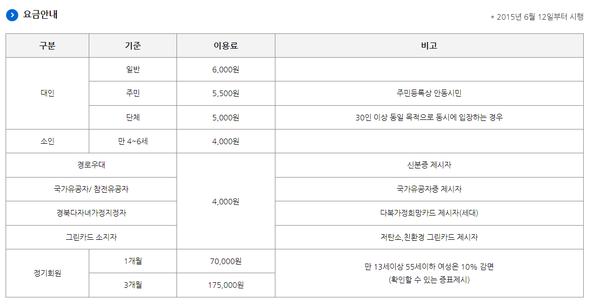 특히나 안동시민이라고 하면 5000원에 이용가능하다.