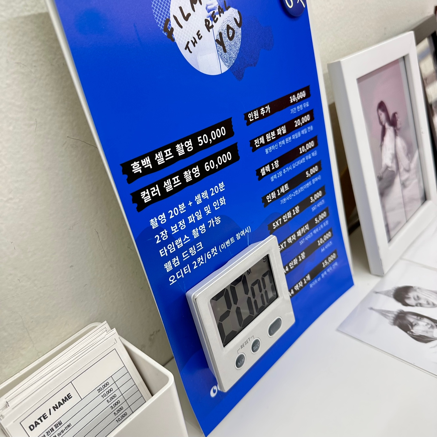구성은 20분 셀프 촬영 + 20분 셀렉 + 2장보정 및 인화 이다