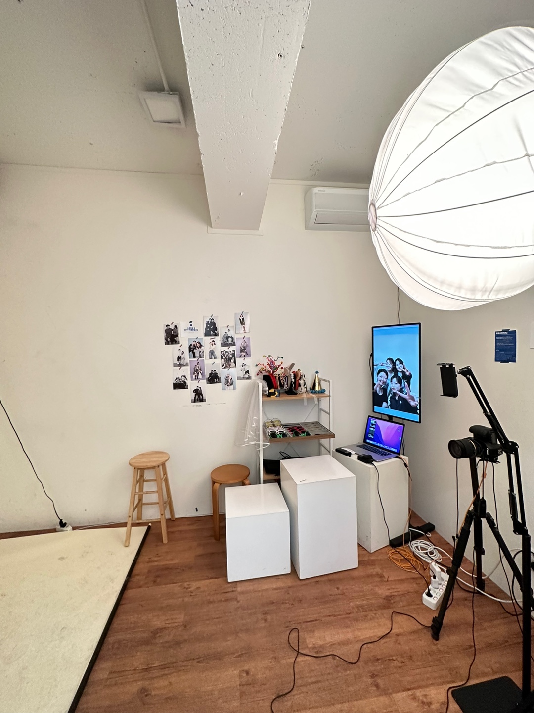 스튜디오 안에는 다양한 의자, 머리띠 등의 소품이 있었고 (자유롭게 사용하면 된다)