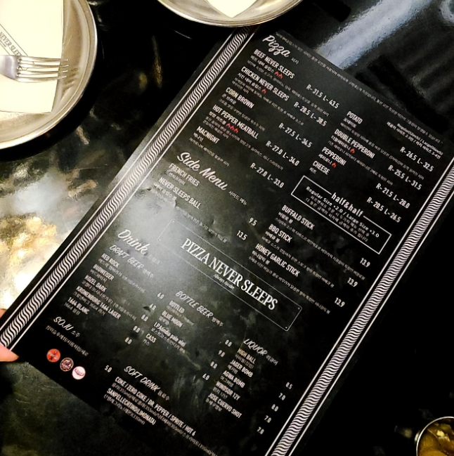 메뉴판은 단순하다. 피자 / 사이드 / 음료