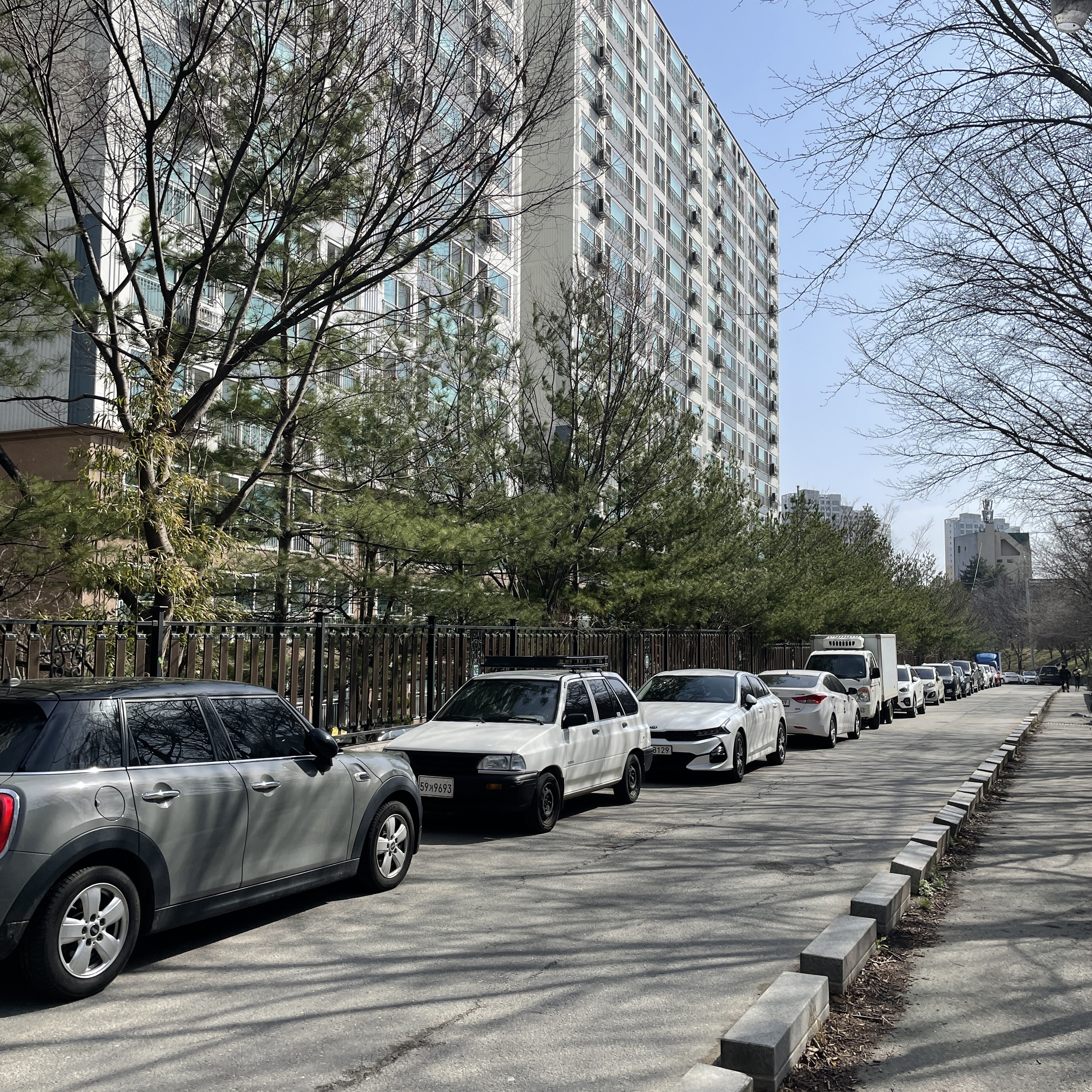 주차 할 공간이 따로 없기 때문에 비하효성아파트 나 대주 피오레 아파트 근처에 갓길주차를 이용했다!