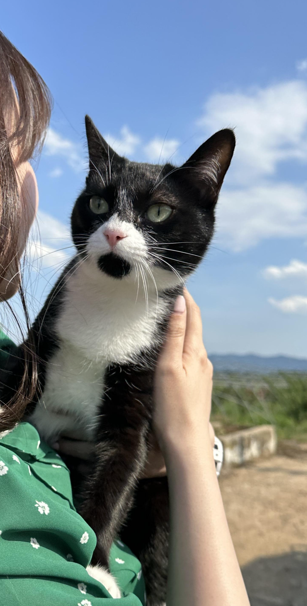 지오니(친구)는 밤이라는 고양이를 키우는 집사인데, 매일 사진으로만 보다가 밤이 실물을 영접했따..
