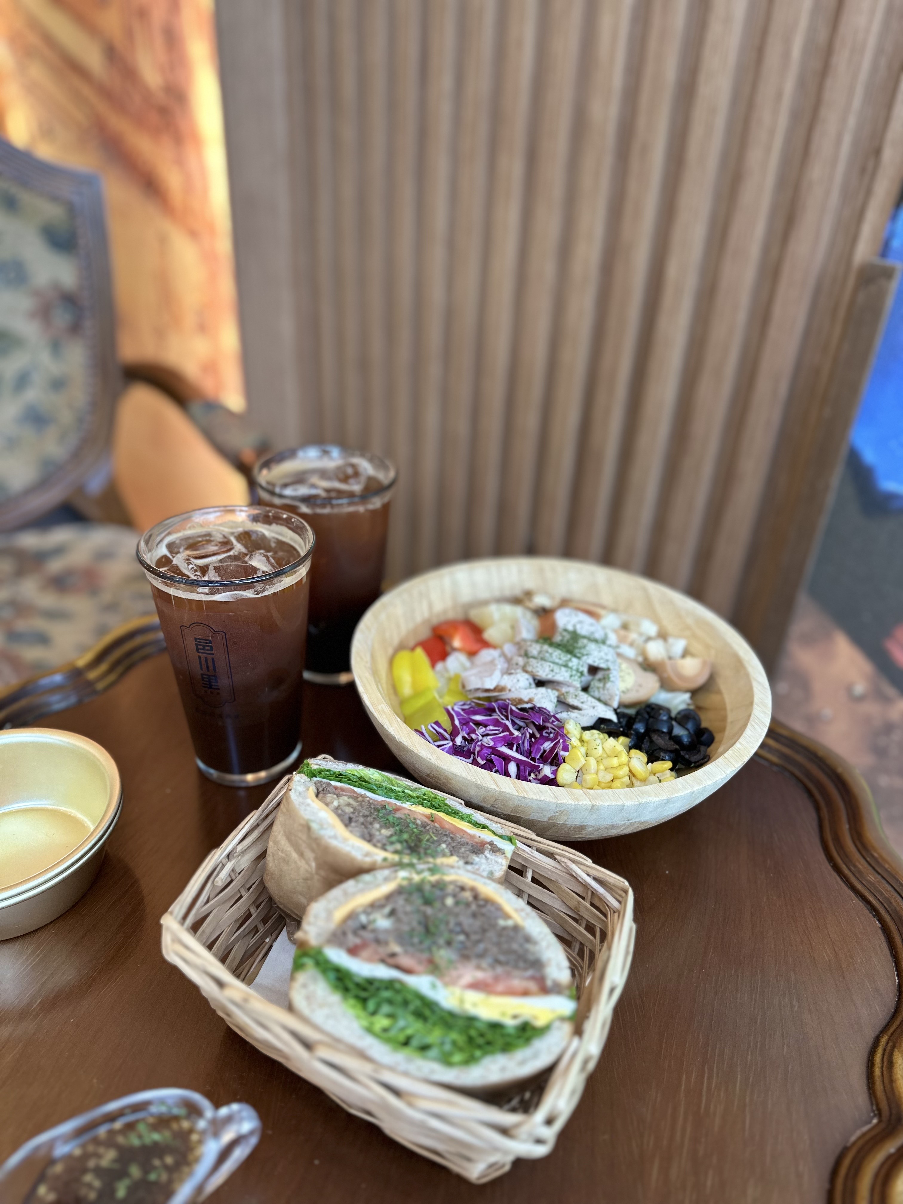 일층에 앉아서 먹기로 했다.베스트 메뉴로 불고기샌드위치랑, 닭가슴살샐러드로 골랐는데 생각보다 양도 많고 넘나 맛있더라~